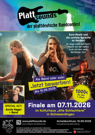 Auch 2026 findet wieder der Bandwettbewerb „Plattsounds“ in Niedersachsen statt. Der Lüneburgische Landschaftsverband e.V. lädt zum Finale am 7. November 2026 in die „Alte Schlachterei“ in Schneverdingen ein.
